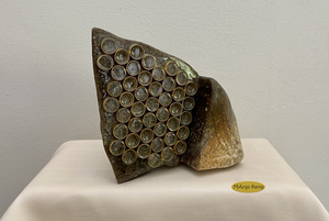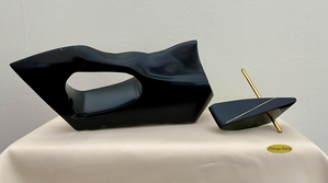 Abstracte sculpturen met openingen en vloeiende lijnen gecombineerd met metalen zoals onder andere messing, koper en deze specialisatie maakt haar werk zo uniek.